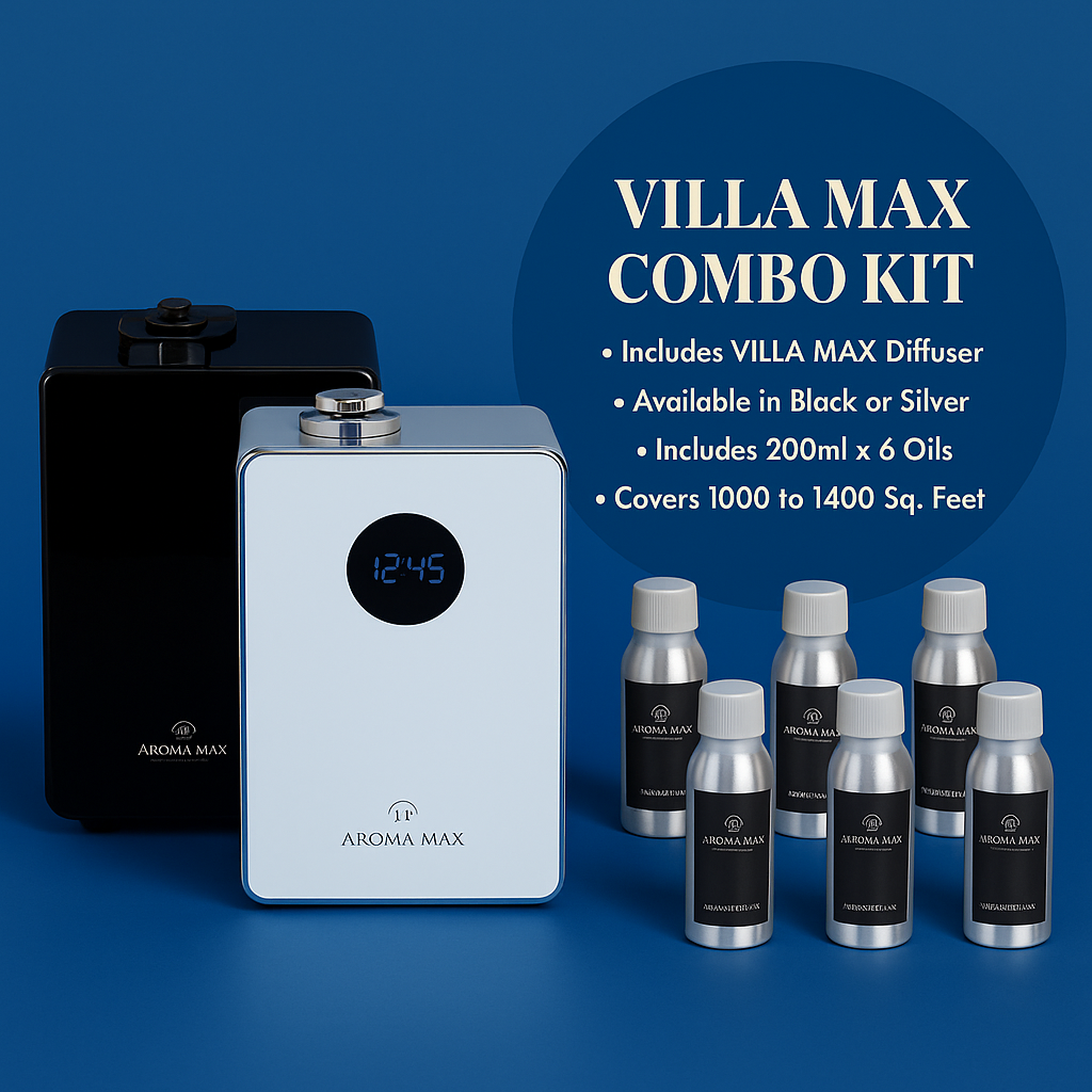 Elevate your home, office, or hospitality space with the VIlla Max — a masterfully engineered diffuser that combines elegant design with commercial-grade performance. Designed for large spaces, it creates a luxurious, welcoming atmosphere through silent, even fragrance diffusion.